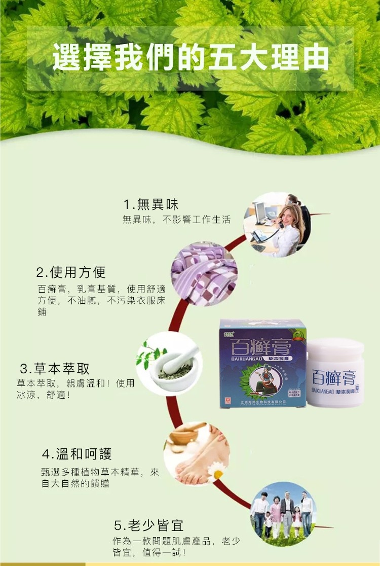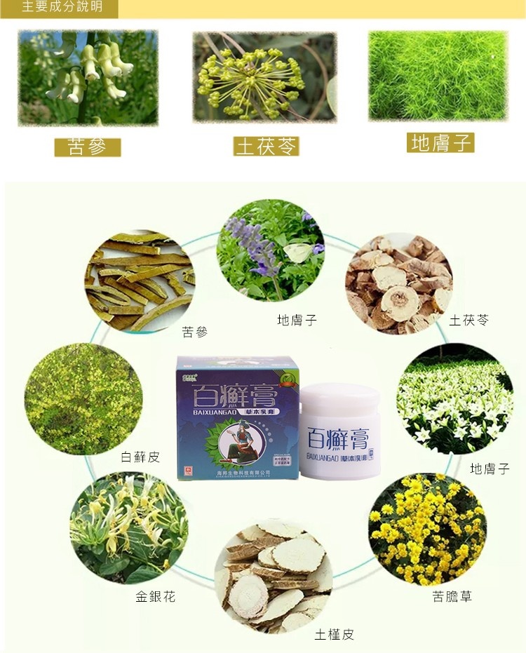 中藥苦參、地膚子、土伏苓、白蘚皮、金銀花、土槿皮、苦膽草 高貴藥材萃取,遠離西藥類固醇的傷害!